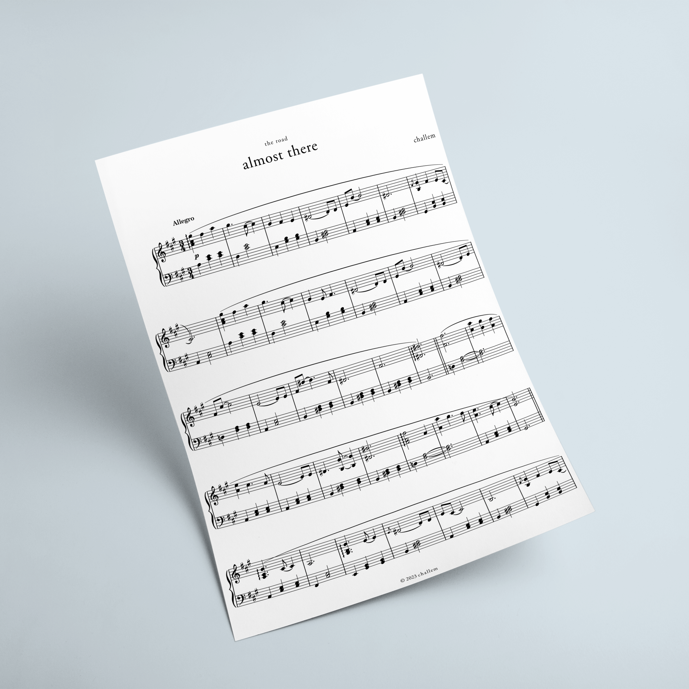 The sheet music for piano of ‘Almost There’ by Challem.